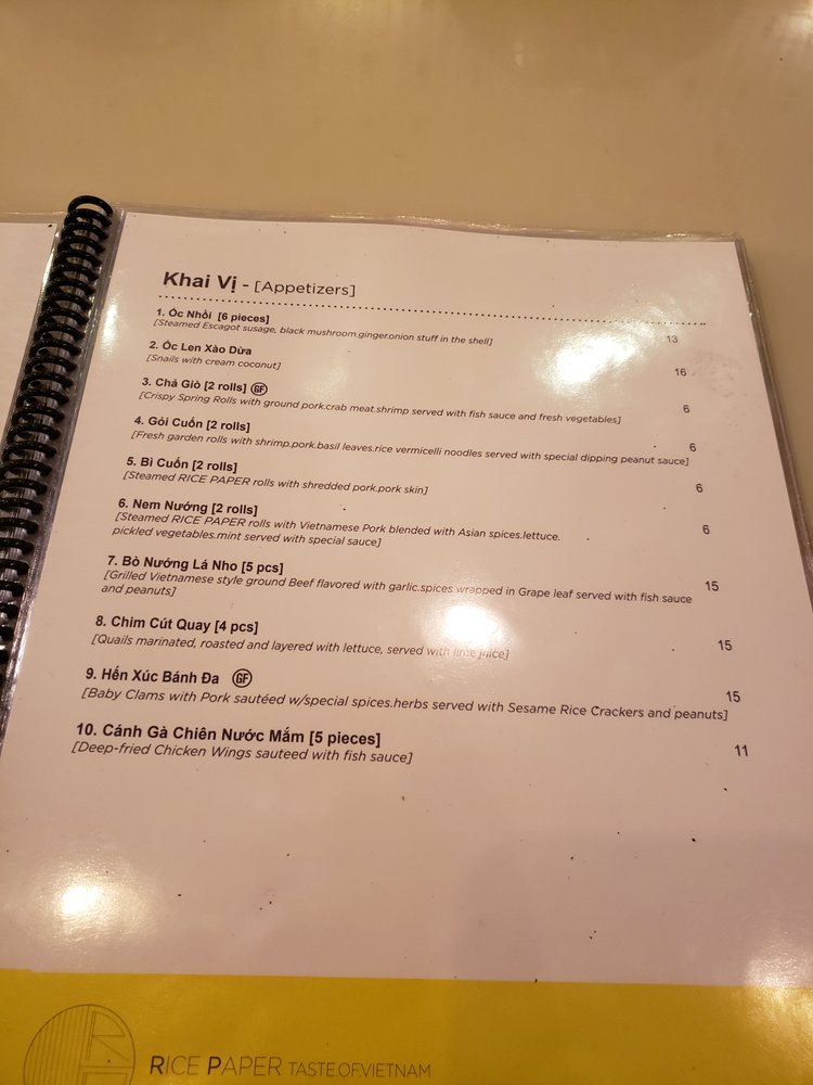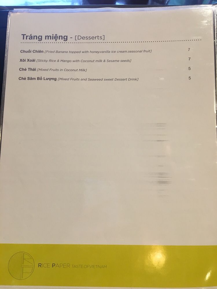 Rice Paper Menu (Update 2025)